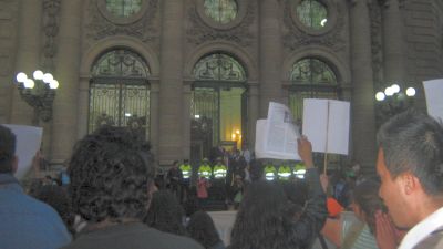 Al llegar al Recinto Legislativo de Donceles, los organizadores avisaron que la Asamblea Legislativa del Distrito Federal se había pronunciado en que podían aceptar una comisión para dialogar. Entraron unos padres y amigos de familia acompañados de un integrante de la Liga de Abogados.