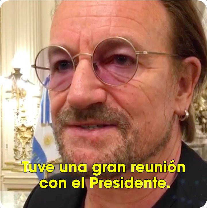 Este lunes, el presidente argentino Mauricio Macri recibió al líder de la banda irlandesa U2, Bono, en la Casa Rosada. El encuentro se dio en la previa al recital que dio el grupo en la ciudad de La Plata, provincia de Buenos Aires, este martes.